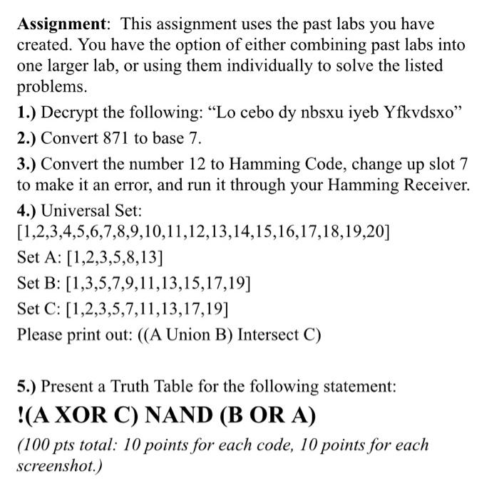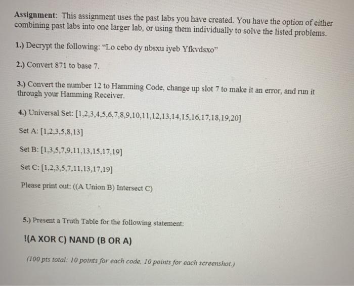 In this course you will. Lo cebo dy nbsxu iyeb Yfkvdsxo 2 Convert 871 to base 7. 3 Convert the number 12 to Hamming Code change up slot 7 to make it an.